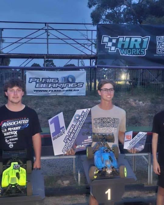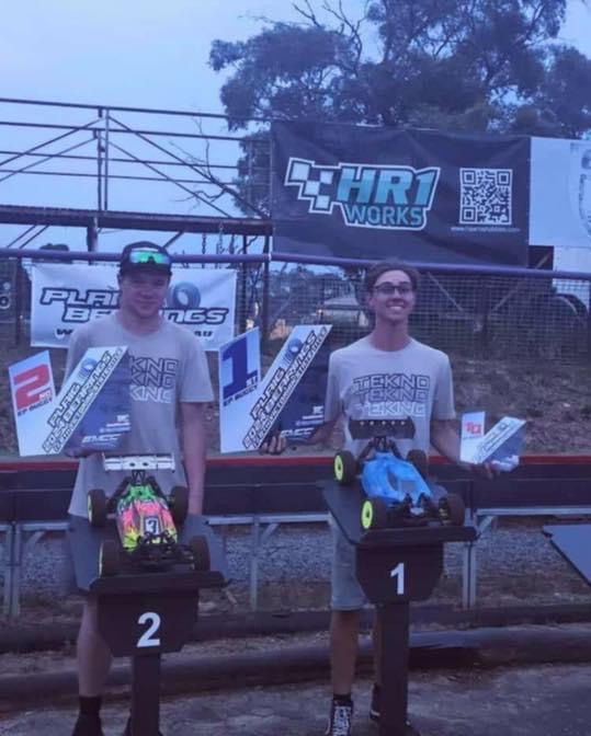 Congratulations to all involved in the Vic Titles this year at EMCC, they had to work hard to get the event through by Saturday night with weather looming, it was the right call as it’s wet today. Was a great event for our Team drivers with a large Team attending. Congrats to all our drivers on theirs wins and places on the podiums, Tekno cars and Tzo tires on point for wins in Nitro Buggy, Ebuggy and 45+ Ebuggy and a 2nd in Nitro Truck. Congrats to the winner on taking out the raffle……